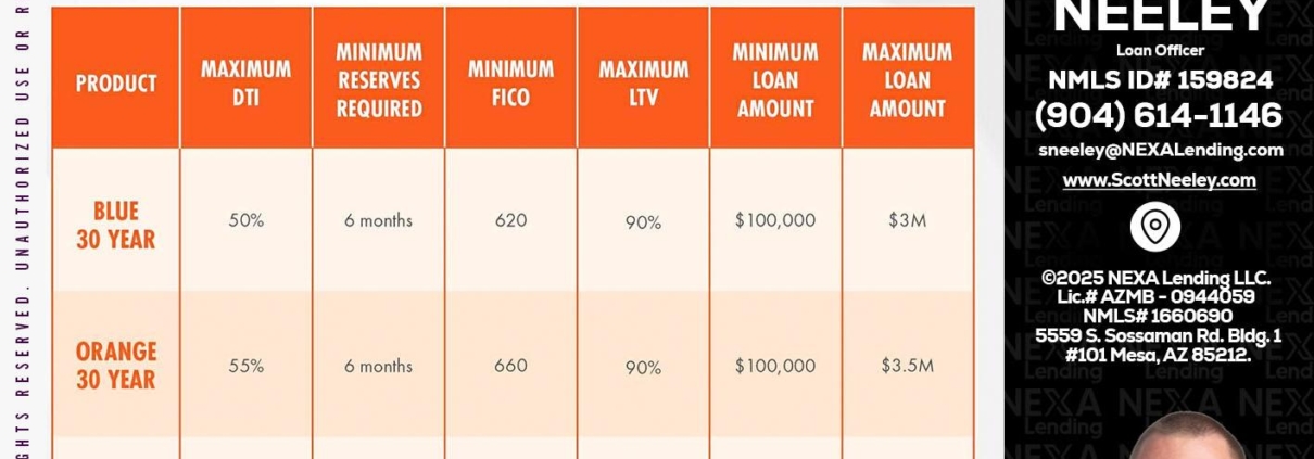 30 YEARS OPTIONS - Scott Neeley -Loan OfficerHi, my name is Scott Neeley. I’m a Loan Officer with NEXA Lending LLC., offering personalized mortgage solutions, fast customized quotes, great rates and service with integrity.