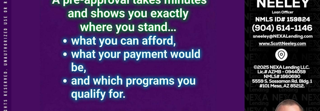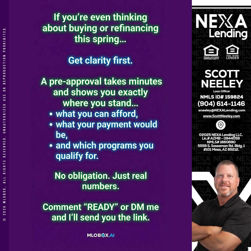 Hi, my name is Scott Neeley. I’m a Loan Officer with NEXA Lending LLC., offering personalized mortgage solutions, fast customized quotes, great rates and service with integrity.