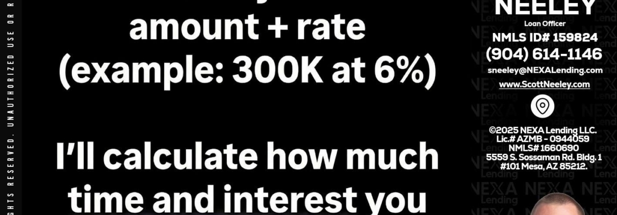 Hi, my name is Scott Neeley. I’m a Loan Officer with NEXA Lending LLC., offering personalized mortgage solutions, fast customized quotes, great rates and service with integrity.